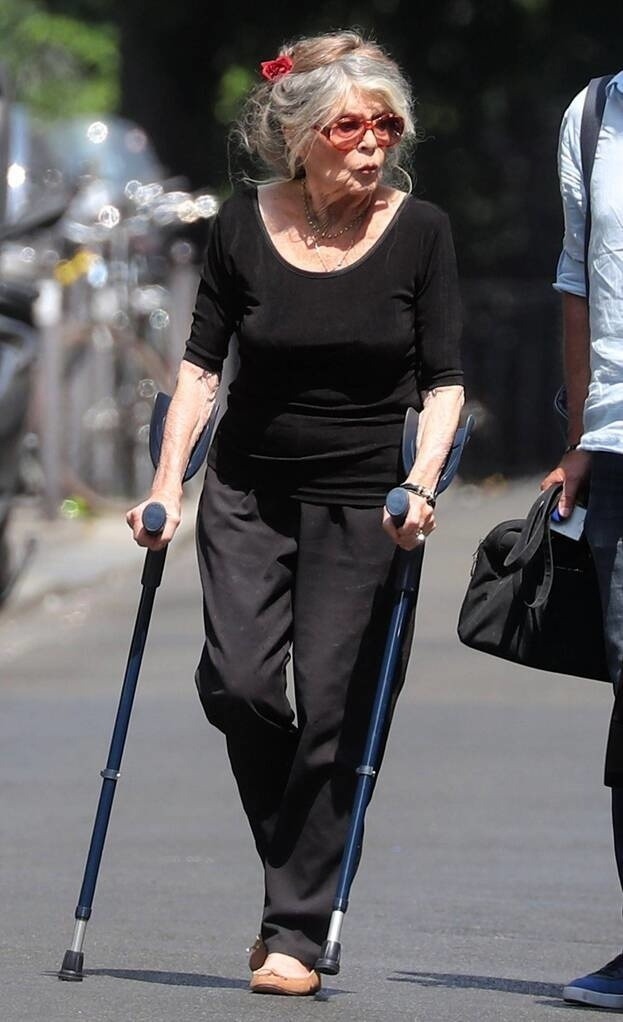 In het Élysée-paleis verscheen Bardot, die zich met een paar krukken voortbeweegt, in een outfit bestaande uit zwarte broek en een T-shirt met ronde hals, aangevuld met een strakke ketting. Macron koos voor een informelere look, gekleed in een spijkerbroek en een smetteloos witte blouse.